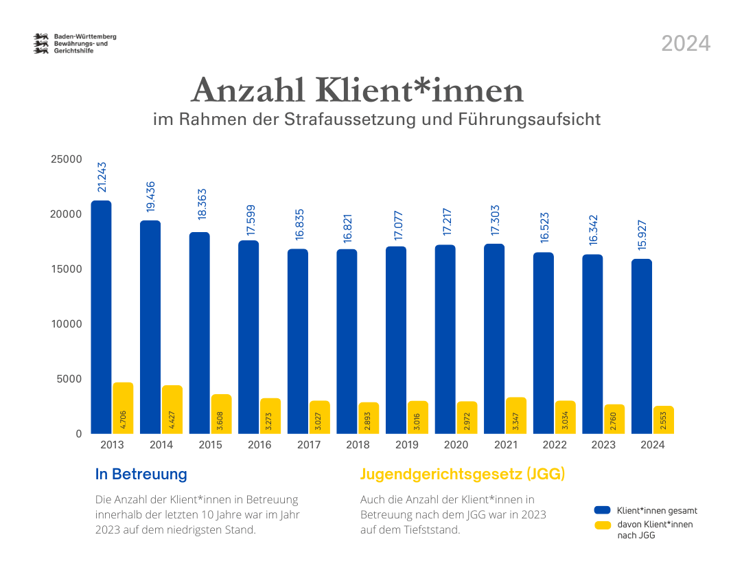 Die Zahl der Klient*innen im Bereich Bewährungshilfe